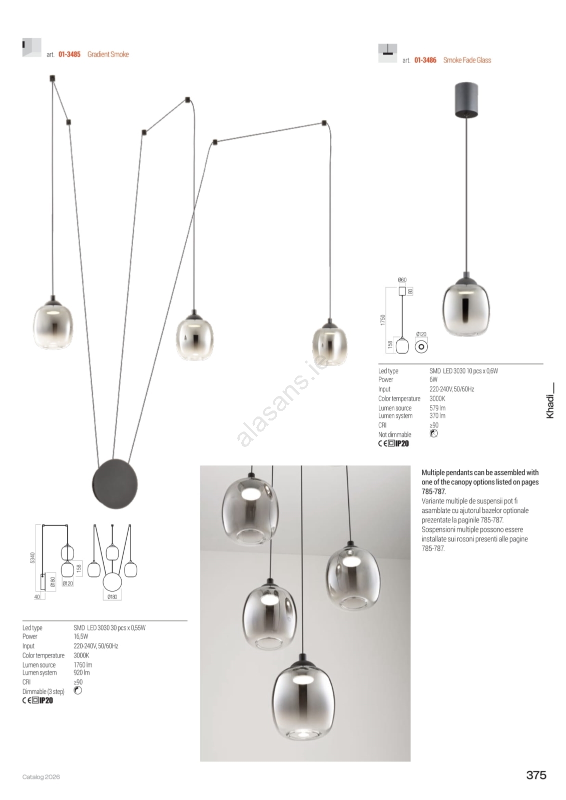 Redo 01-3485 - LED Dimmable Wall Light KHADI 3xLED/5.5W/230V CRI 90 Ø 12 cm Black/Smoked is a modern lighting solution for your home. The light takes advantage of Integrated LED module, which provides effective and energy-saving lighting.The design and the high quality of the light ensure a long lifespan and satisfaction with your lighting.