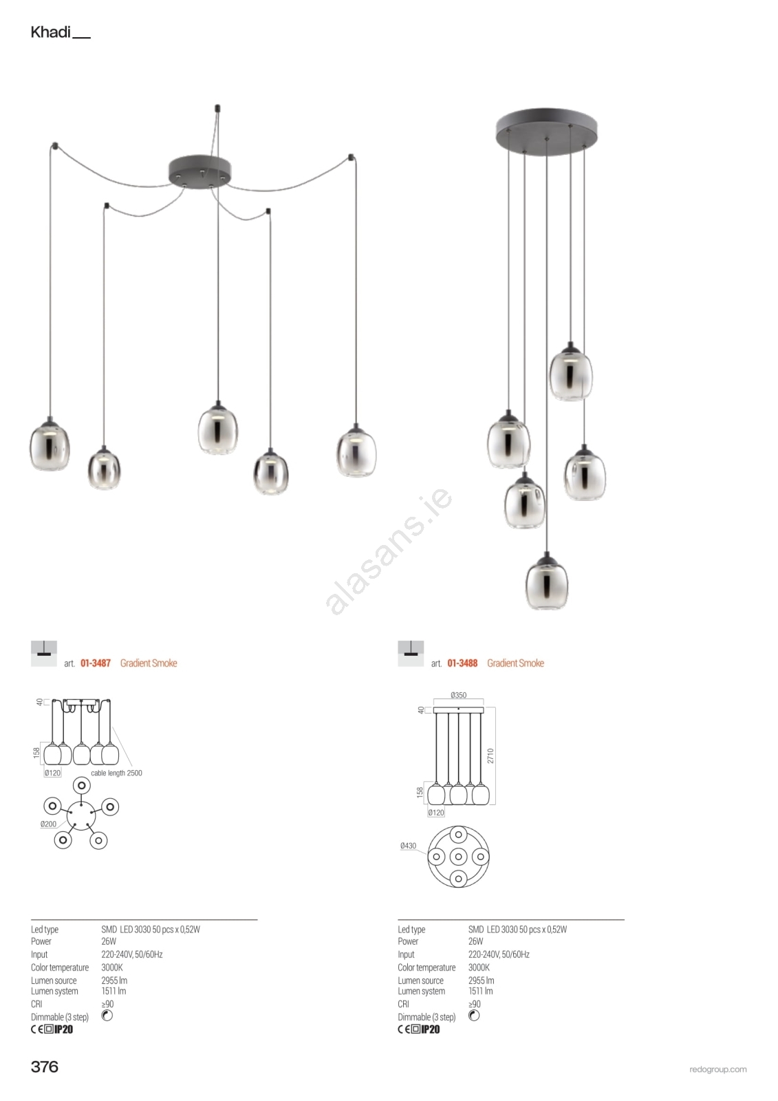 Redo 01-3487 - KHADI LED Dimmable Cable Pendant 5xLED/5.2W/230V CRI 90, spider-style, black/smoked glass