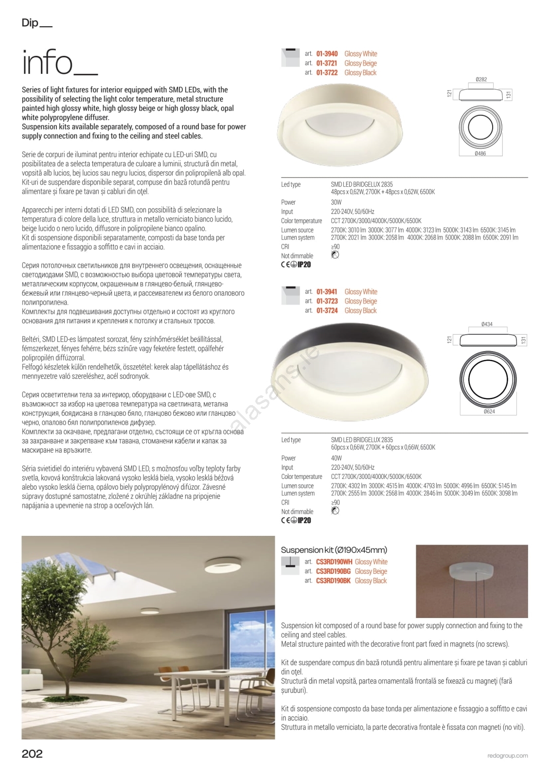 • Redo 01-3721 - DIP LED Ceiling Light 30W/230V 2700/3000/4000/5000/6500K CRI 90 Ø 48.6 cm Beige