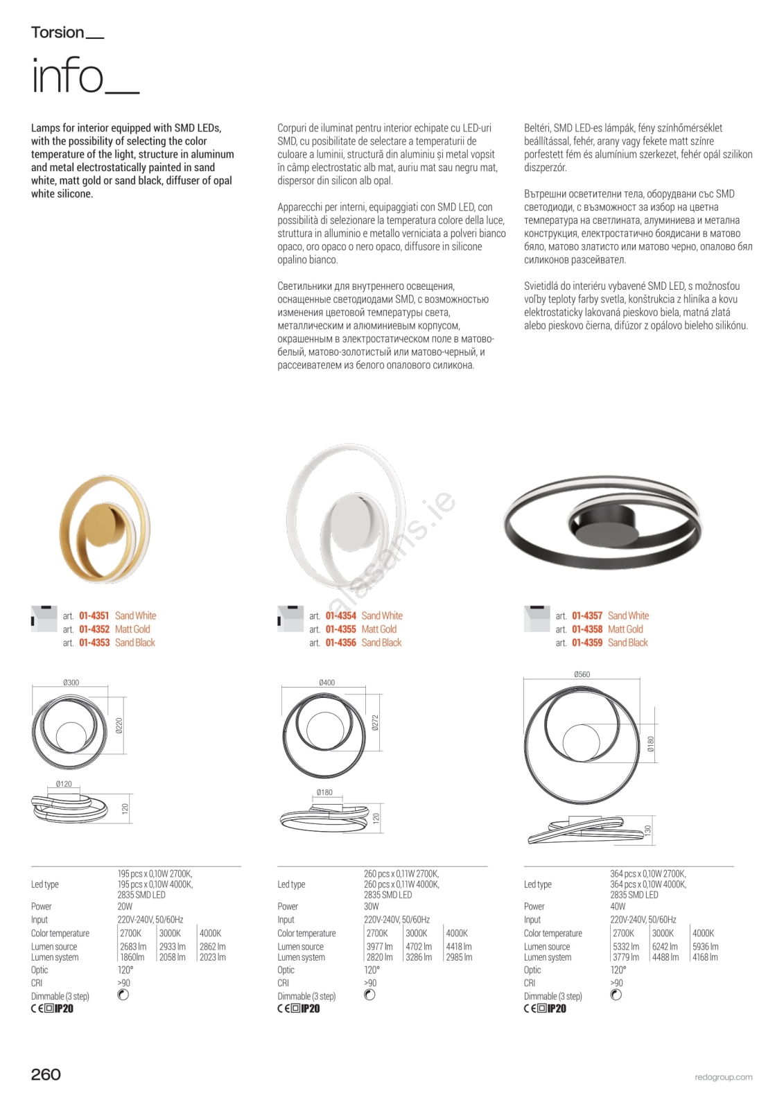 • Redo 01-4355 - TORSION Dimmable LED Wall Light 30W/230V 2700/3000/4000K CRI 90 Gold