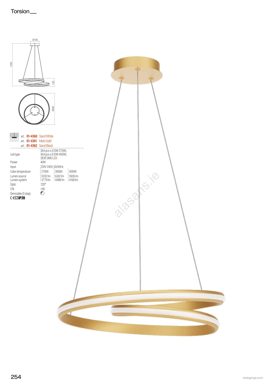 • Redo 01-4361 - Dimmable LED cable pendant TORSION LED/40W/230V 2700/3000/4000K CRI 90 Ø 56 cm gold