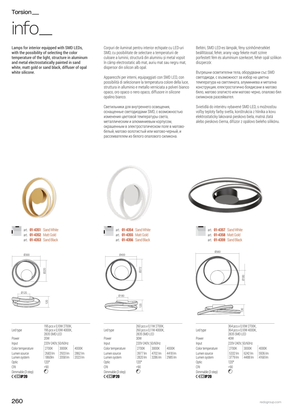 • Redo 01-4364 - TORSION LED Dimmable Cable-Suspended Chandelier LED/60W/230V 2700/3000/4000K CRI 90 Ø 75.2 cm Gold