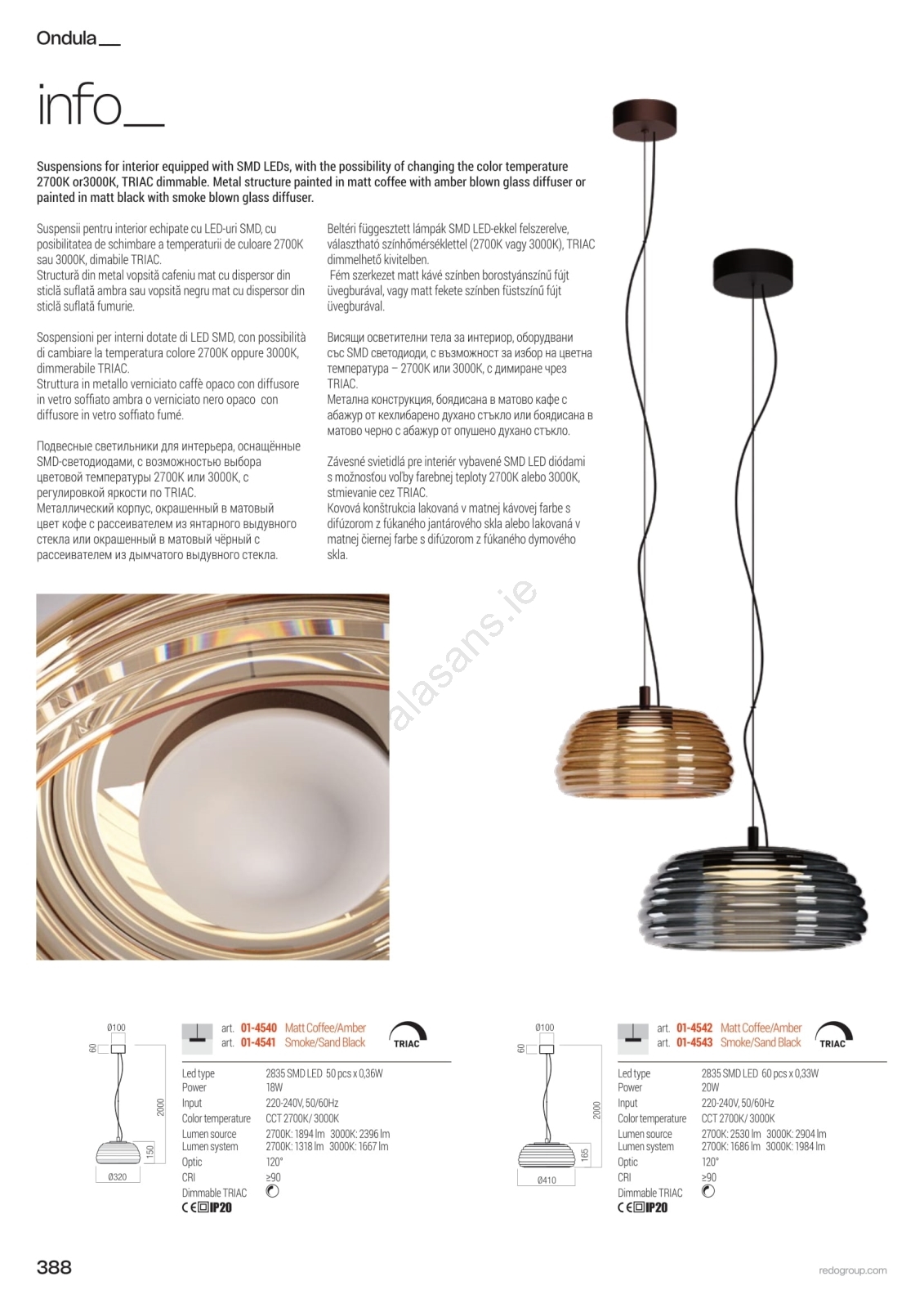 • Redo 01-4540 - ONDULA Dimmable LED Pendant on Cable LED/12W/230V 2700K/3000K CRI 90 dia. 32 cm beige/smoked