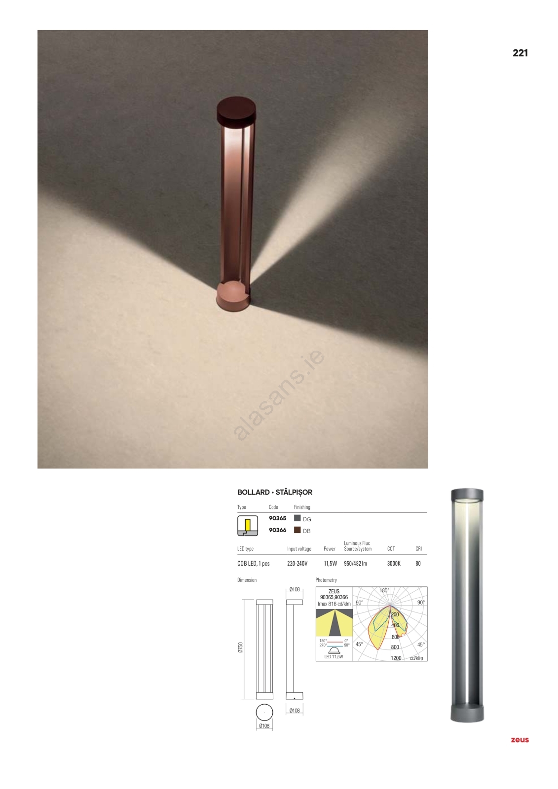 • Redo 90366 - ZEUS LED Outdoor Lamp, 11.5W/230V, 3000K, 75 cm, IP54, brown