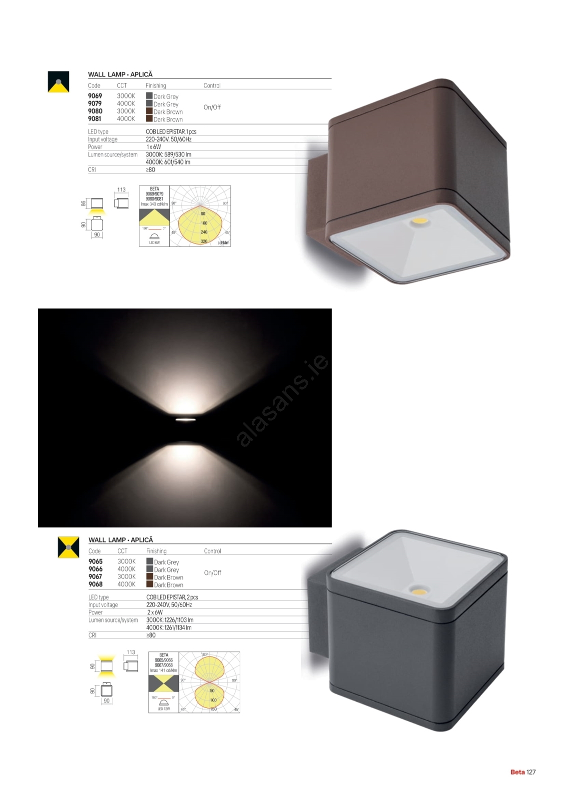 • Redo 9080 - BETA LED Outdoor Wall Light, 6W, 230V, 3000K, IP54, Brown
