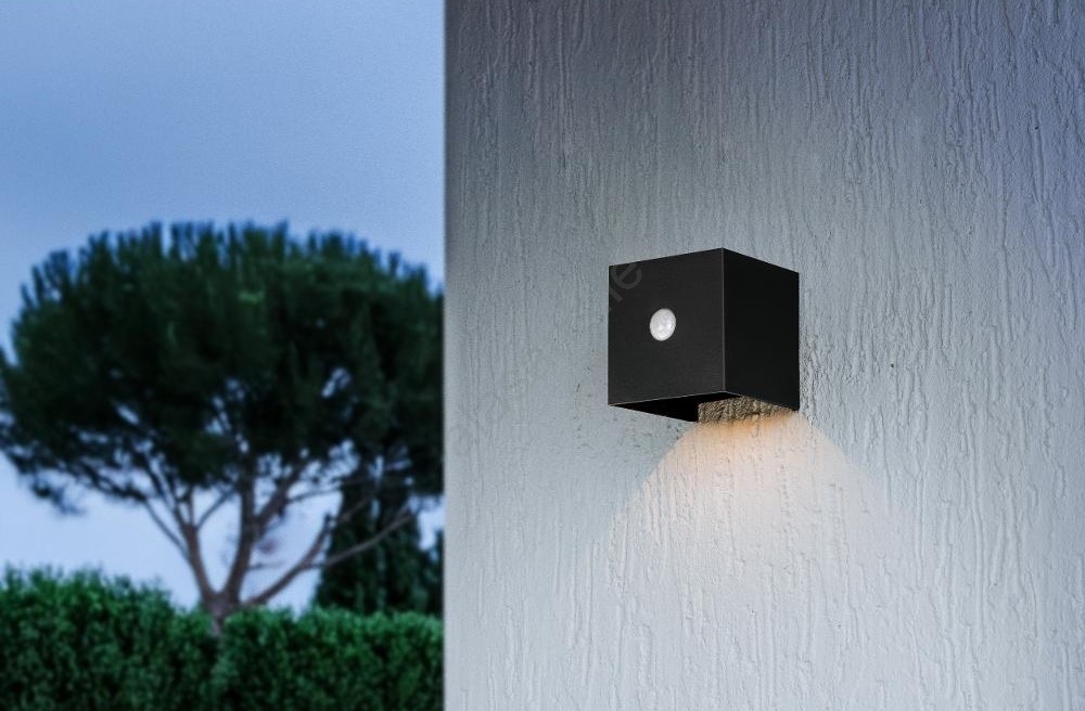 LED solar wall light with sensor, 1W LED, 3.7V 1200 mAh, IP44, black
