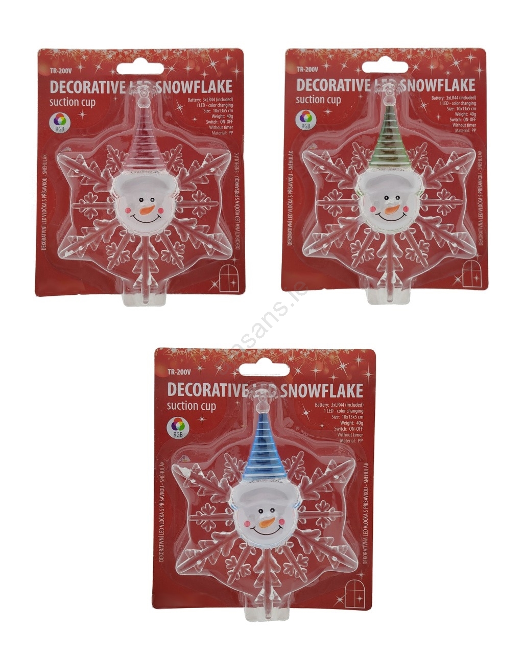 RGB LED Christmas decoration with suction cup (LED/3xLR44) – snowman, red/blue/green