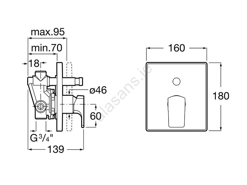 Roca A5A0B01C00 - L90 Concealed Shower Mixer, Polished Chrome