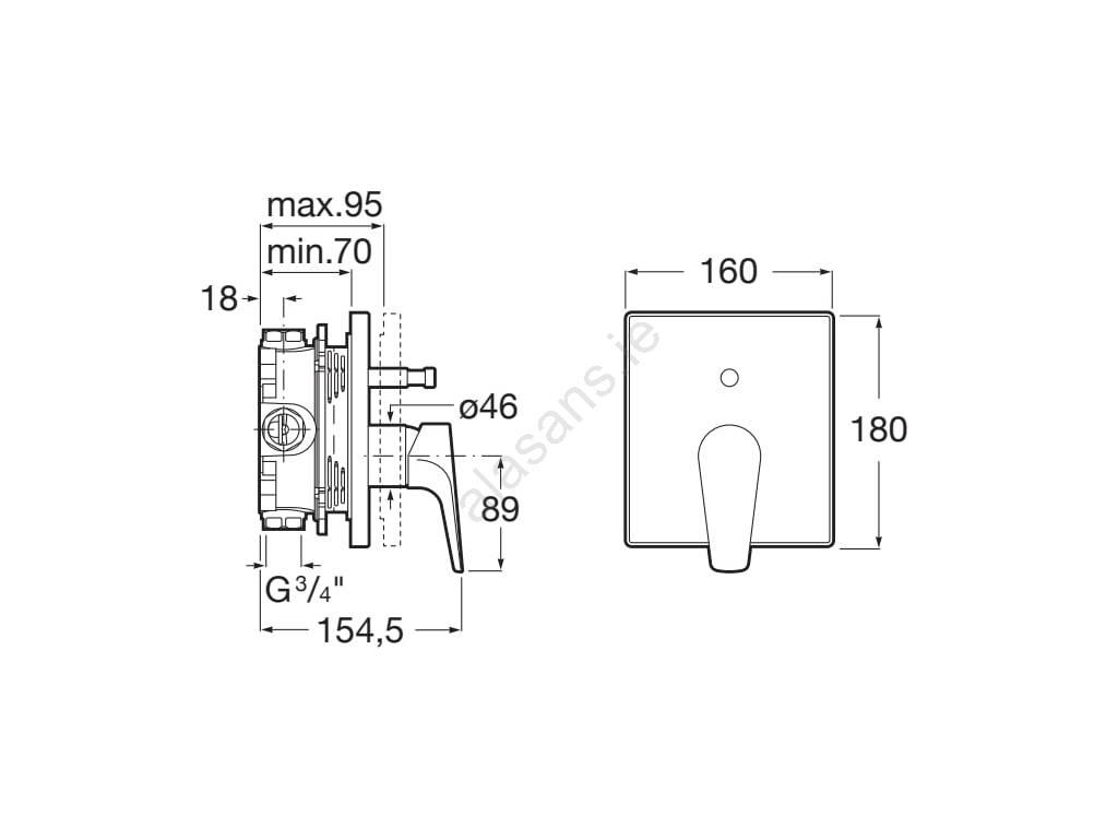 • Wall-mounted shower mixer for concealed installation.