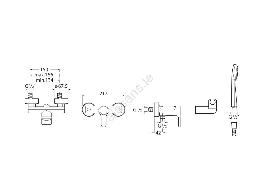 • Package includes: shower mixer, hand shower, 1.5 m flexible hose, swivel wall bracket.