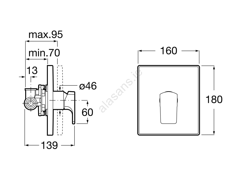 Roca A5A2B01C00 - L90 shower mixer for concealed installation, polished chrome