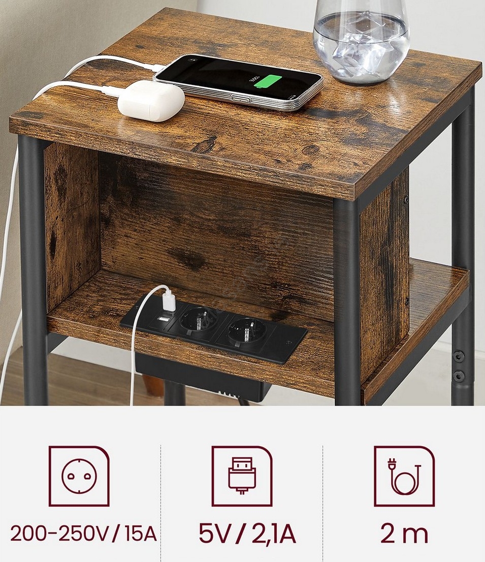 • 2 built-in drawers and 2 USB ports for charging multiple devices at once.