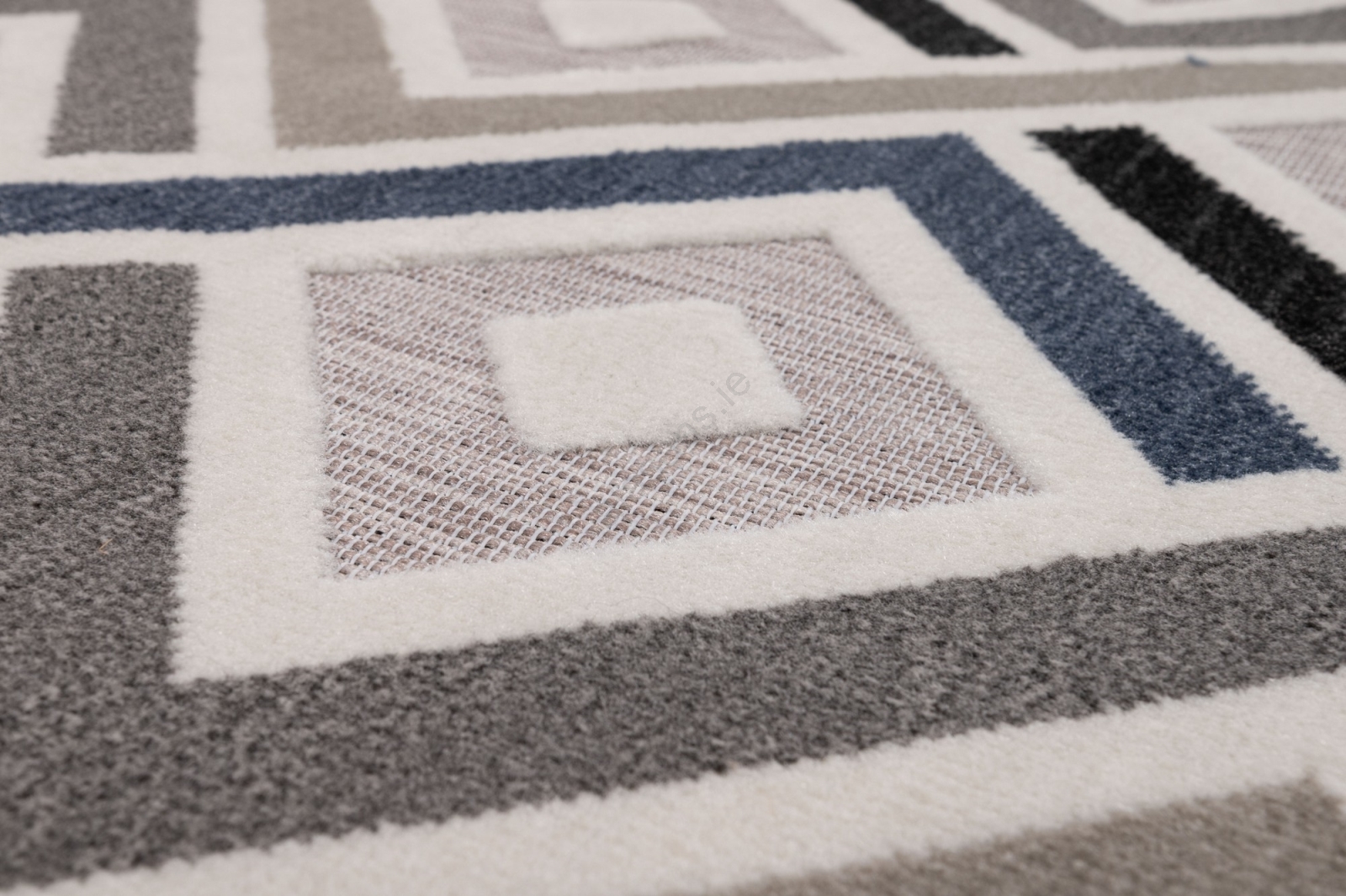 • The pile features a modern geometric design with varied pile heights, giving the rug a subtle 3D effect.
