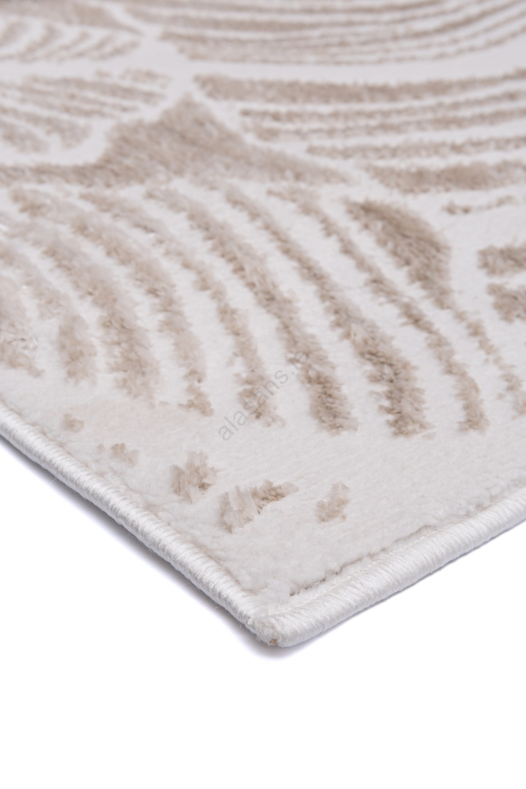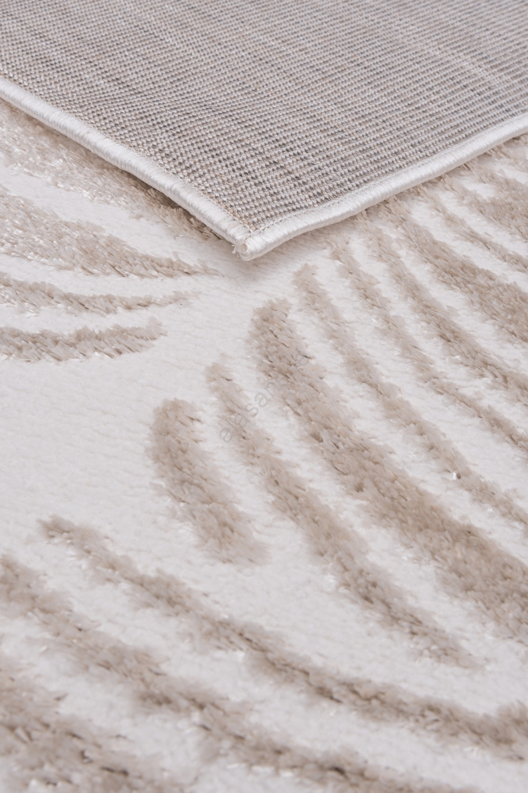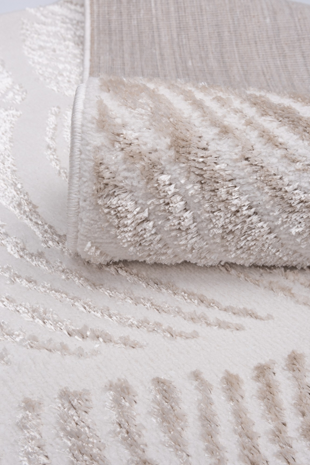 • This soft beige rug with a subtle leaf pattern brings a touch of lightness and coziness to any space.