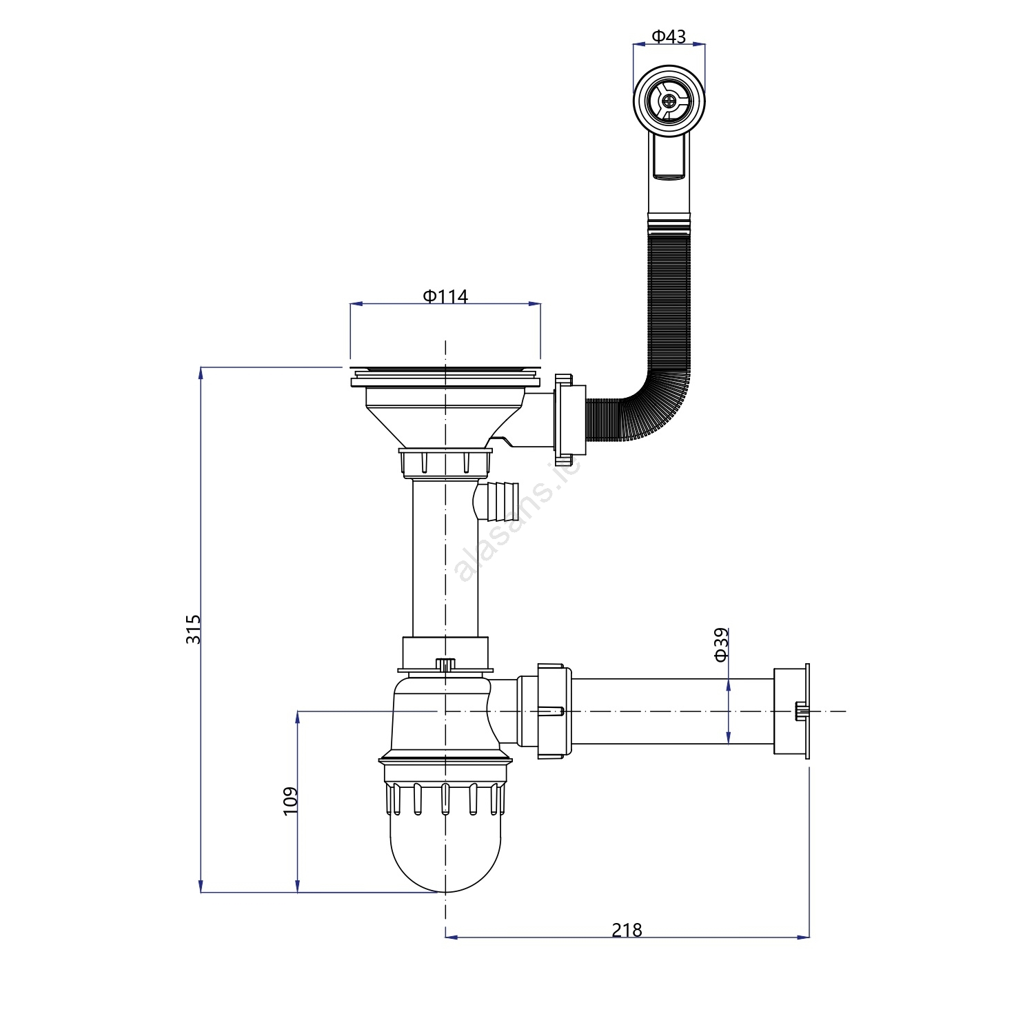 • The package includes a drain and trap with a branch connection for a dishwasher or washing machine.