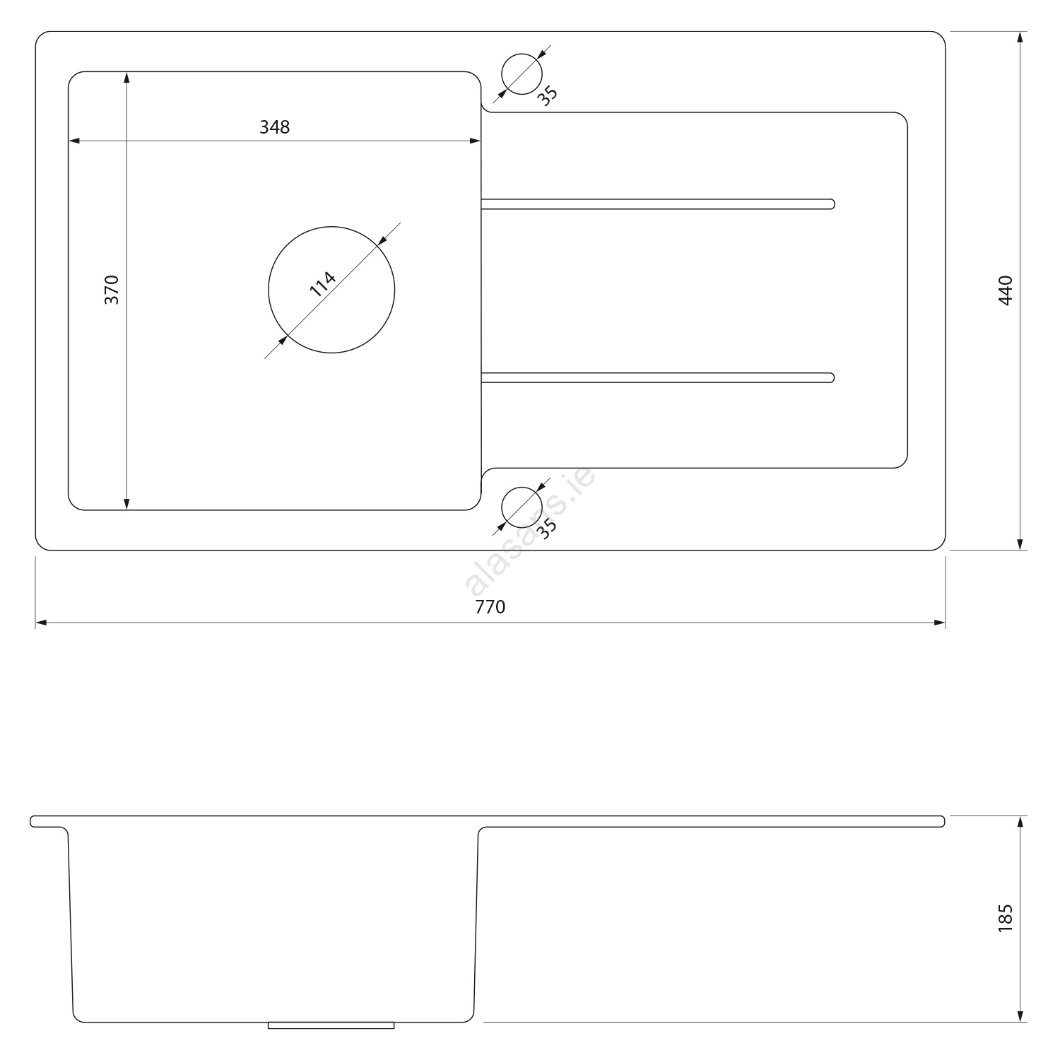 • It is designed for top-mount installation and features an integrated draining board.