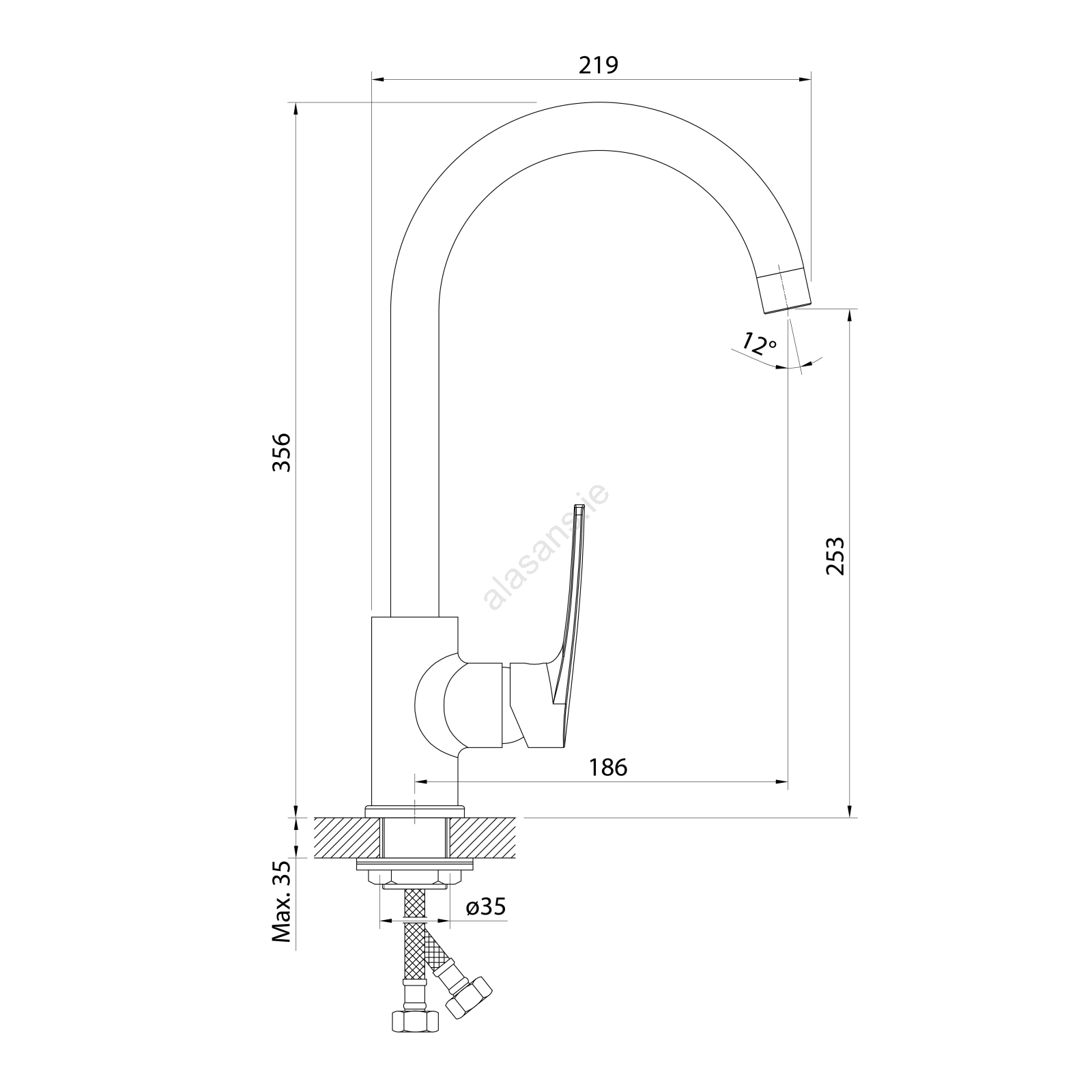 • It stands 356 mm high with a spout reach of 219 mm.