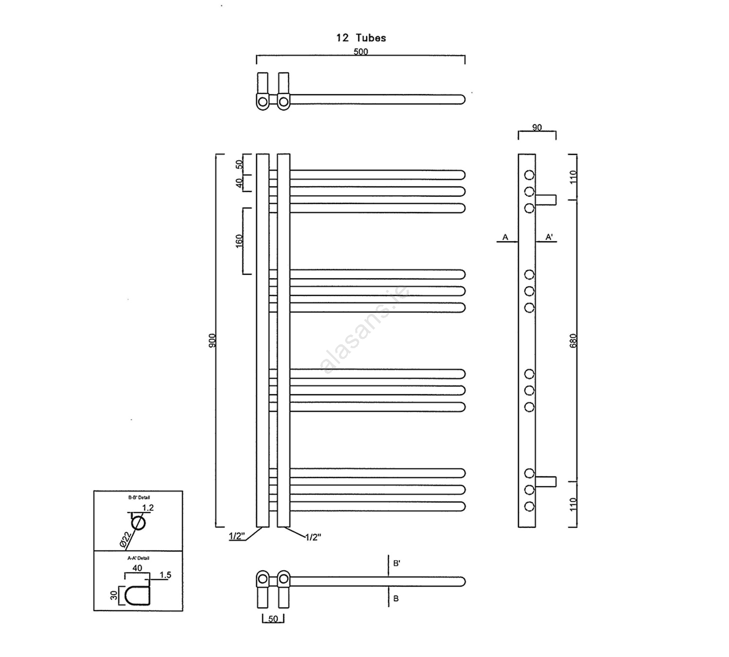 Sapho - DORLION Bathroom Radiator 90x50 cm Matte Black