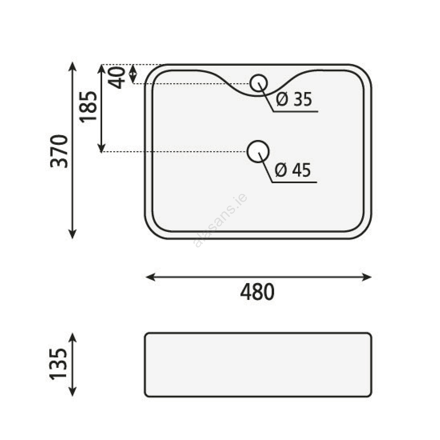 • The washbasin is designed to sit on a countertop.
