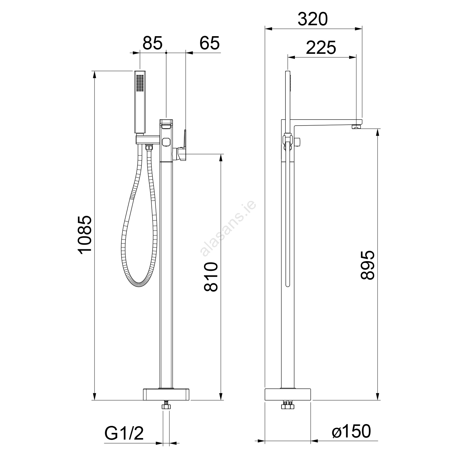 • This freestanding bathtub mixer is designed for floor-mounted installation.