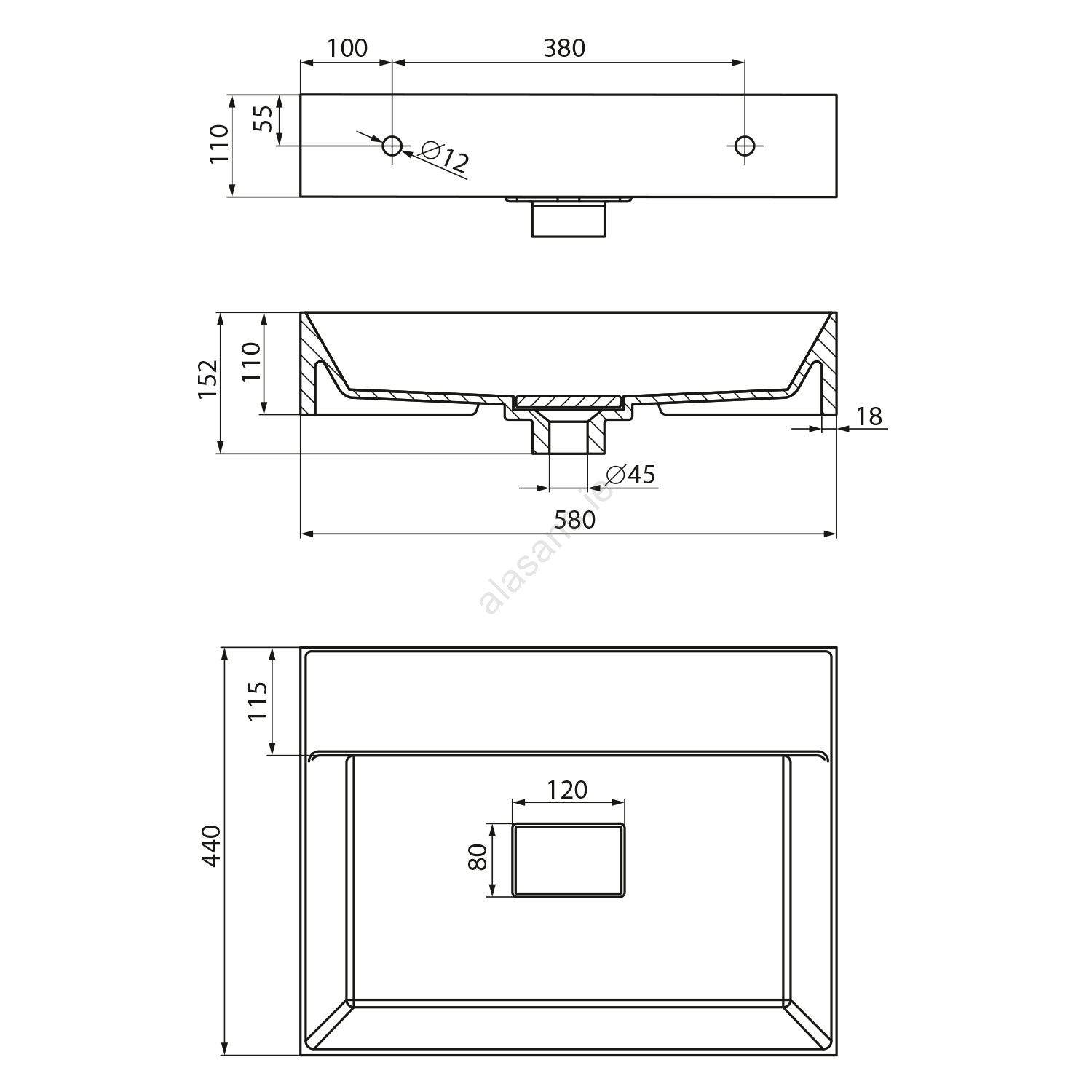 Sapho - GODIVA Wall-Hung Basin 58x44 cm Marble/White