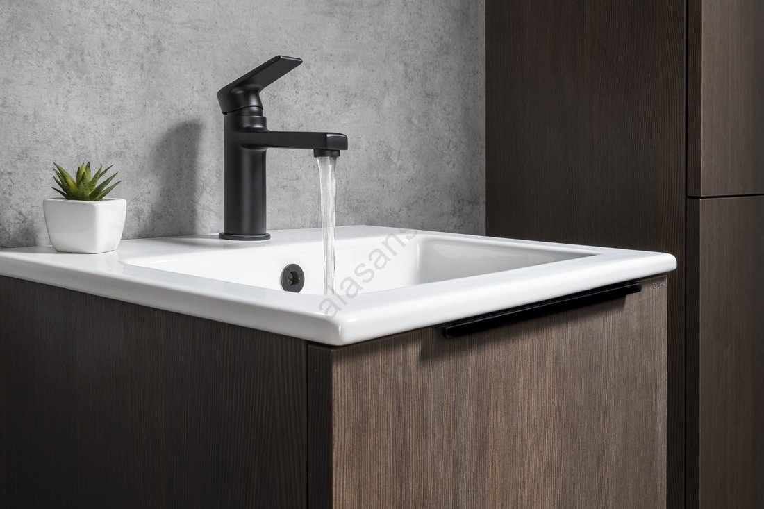• Its design is highlighted by a robust lever that complements the spout's angular lines.