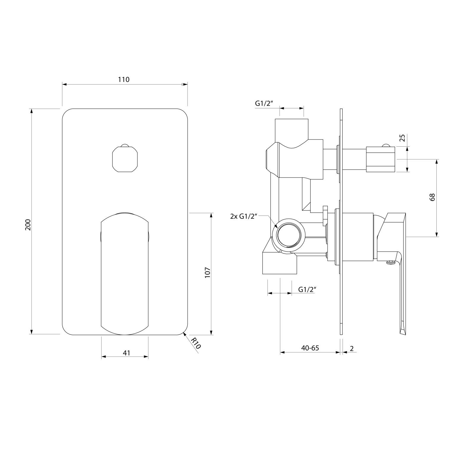 • Concealed shower mixer mixona features a modern design with angular and rounded elements.