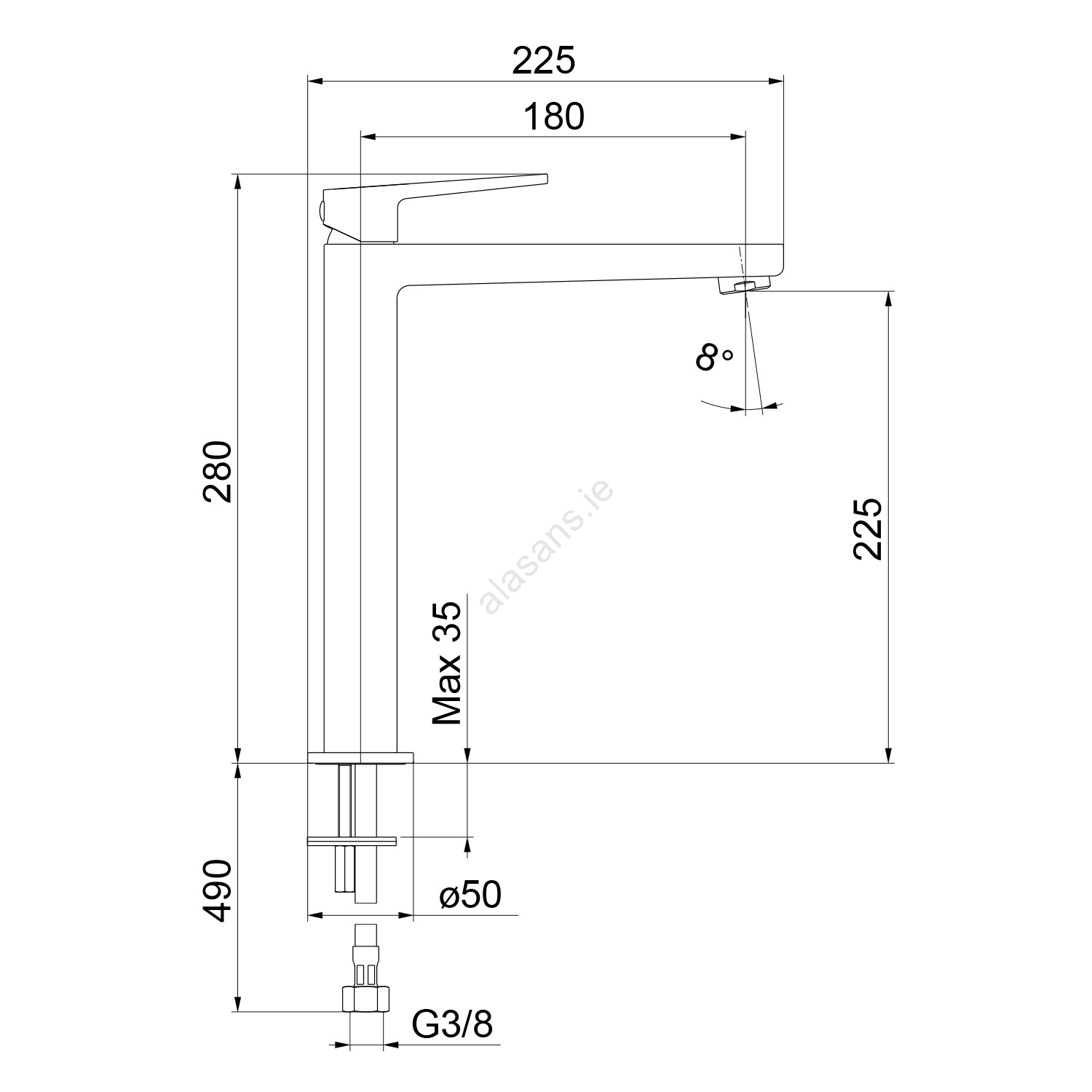 • Installation is deck-mounted and operation is via a single lever.