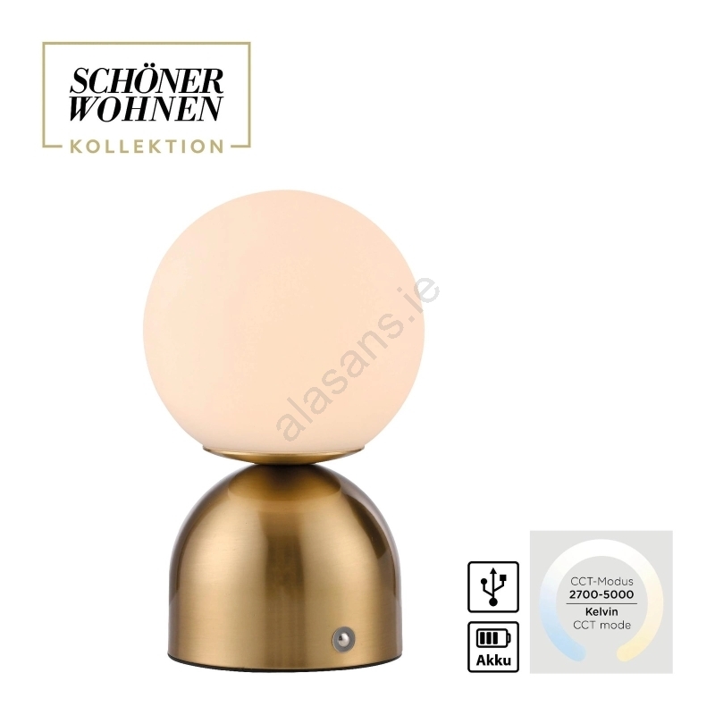 Schöner Wohnen 19218-12 - RUDI LED Dimmable Touch Rechargeable Table Lamp LED/1.2W/5V 3000–6000K 1200 mAh Gold
