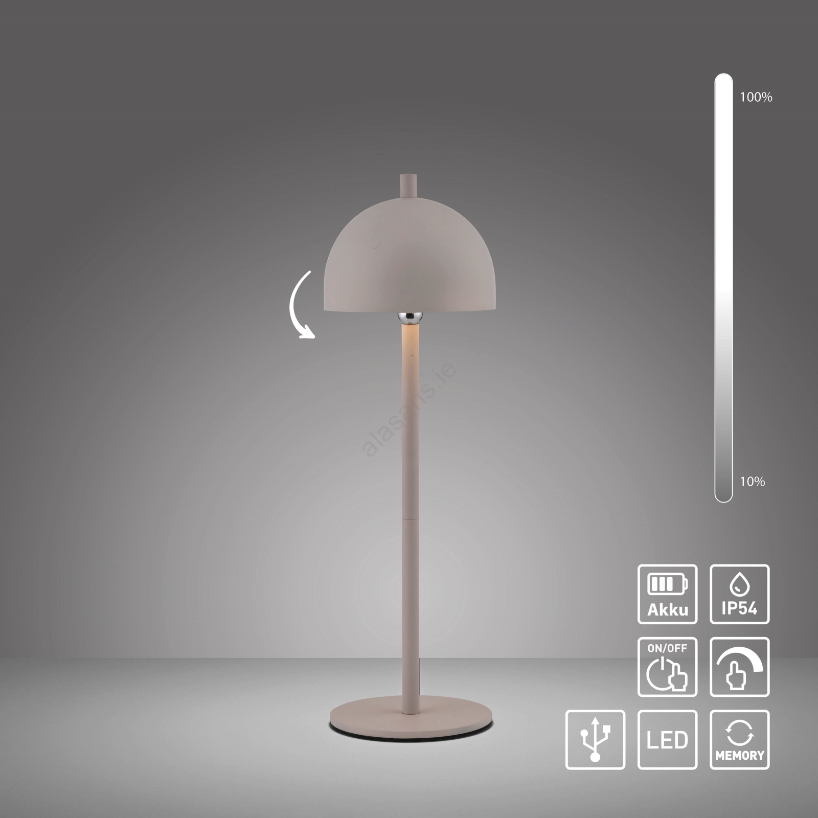 Schöner Wohnen 19244-39 - BELLIS LED Rechargeable Touch Dimmable Outdoor Table Lamp, 2.5 W / 5 V, 2600 mAh, IP54, Grey
