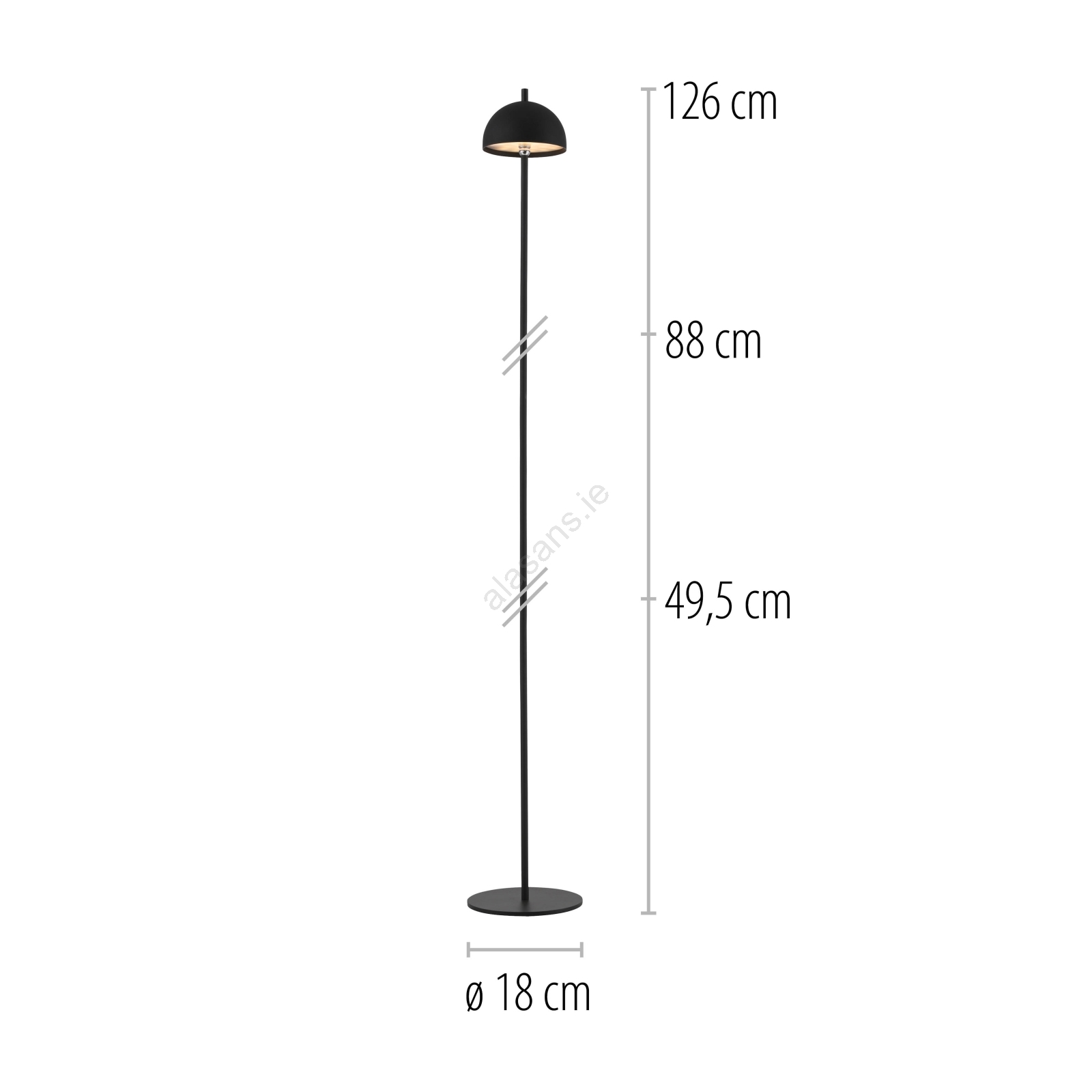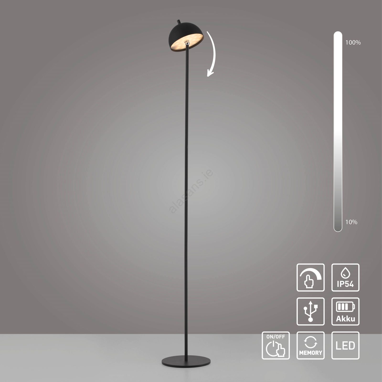 Schöner Wohnen 19245-18 - BELLIS LED Touch-Dimmable Rechargeable Outdoor Floor Lamp, 2.5 W / 5 V, 2600 mAh, IP54, Black
