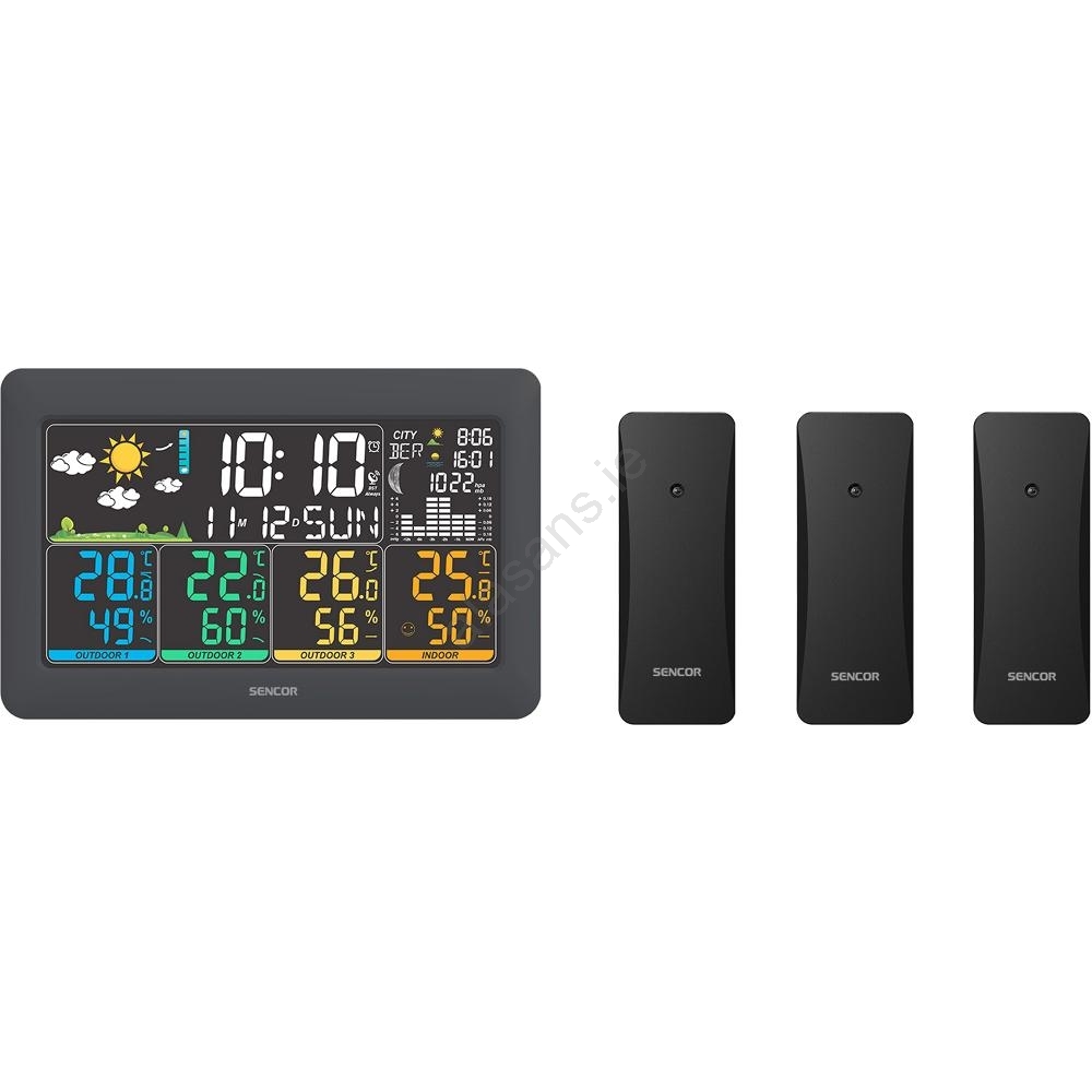 Sencor - Weather station with color LCD display + 3 sensors 3xAA + 6xAA black