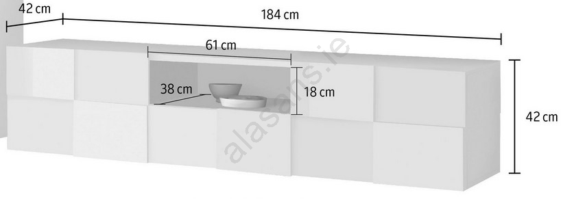 • Its long rectangular shape makes it ideal for placement under a wall-mounted TV or as a contemporary storage solution in the living room.