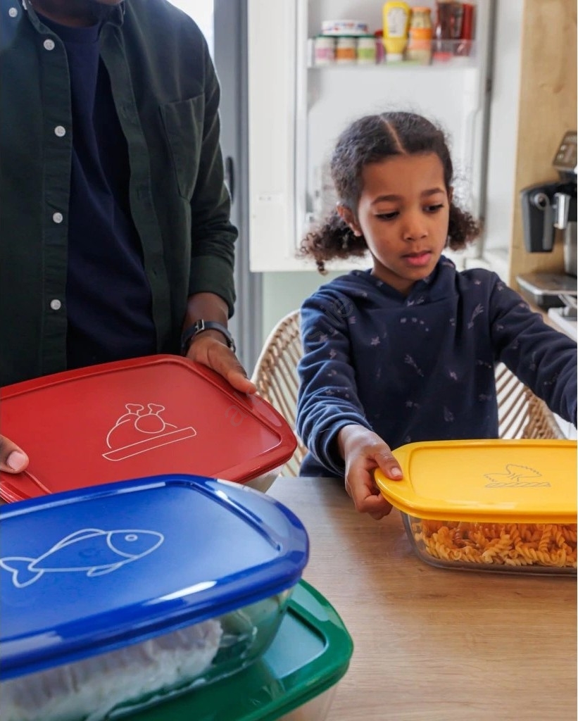 • 2x Pyrex containers made from durable borosilicate glass are designed for preparing, reheating, storing and freezing meals.