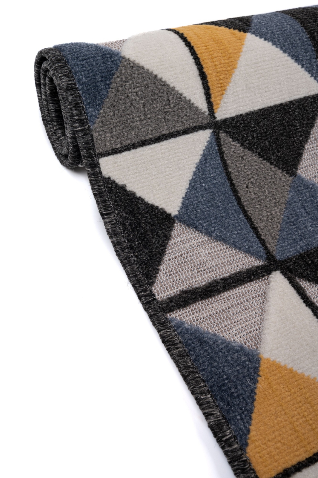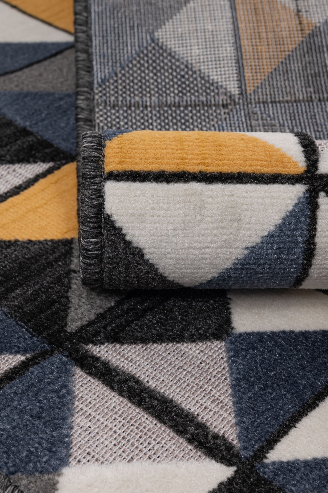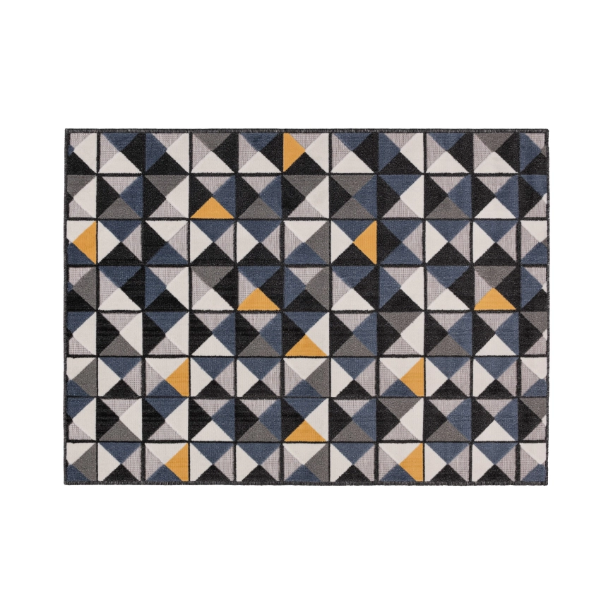 • The pile features a modern geometric pattern and varied pile heights, giving the rug a 3D effect.