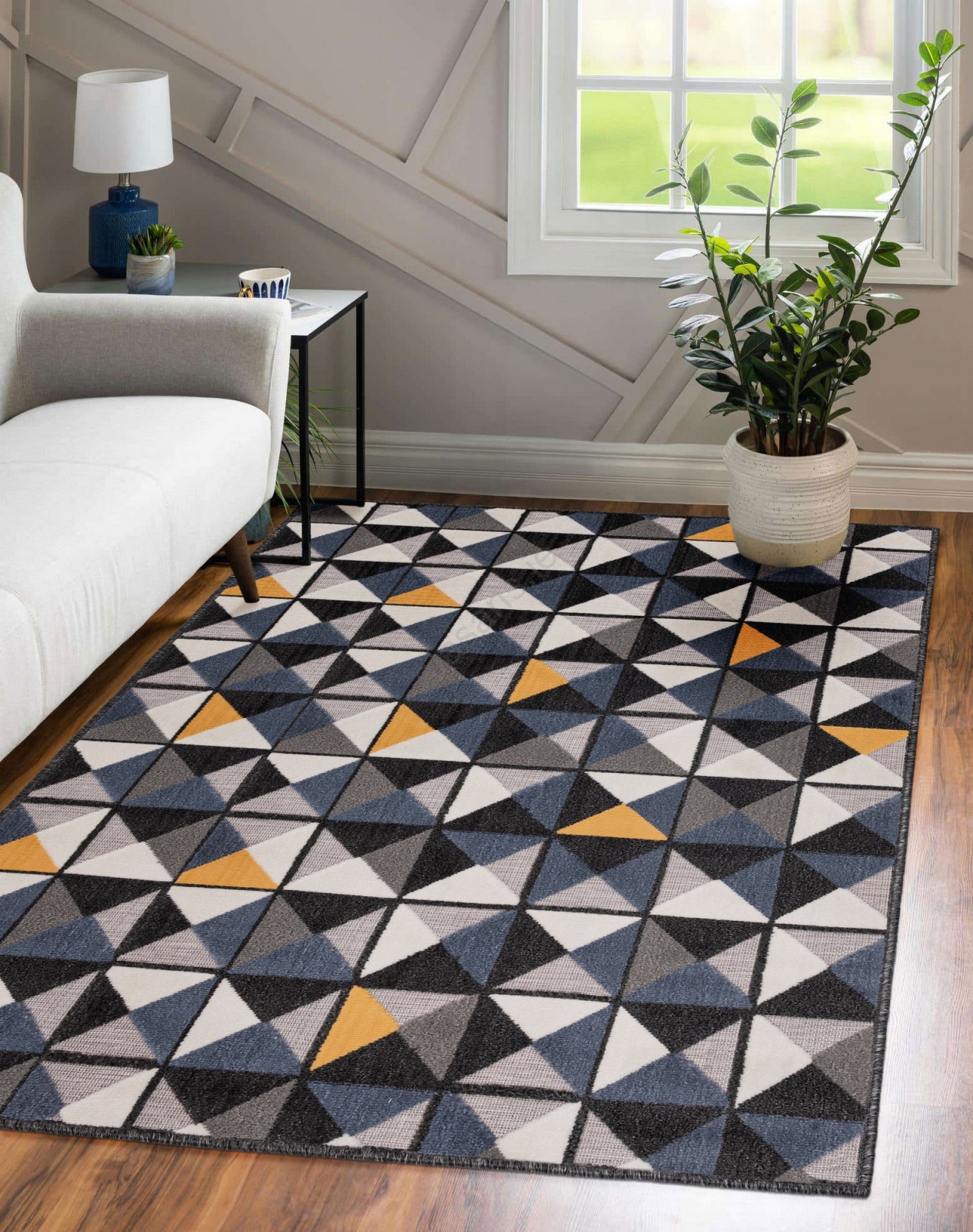 • Stylish and elegant rug with geometric patterns.