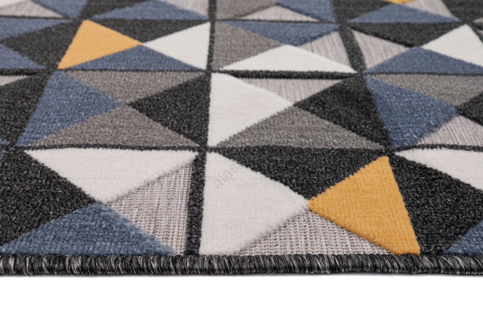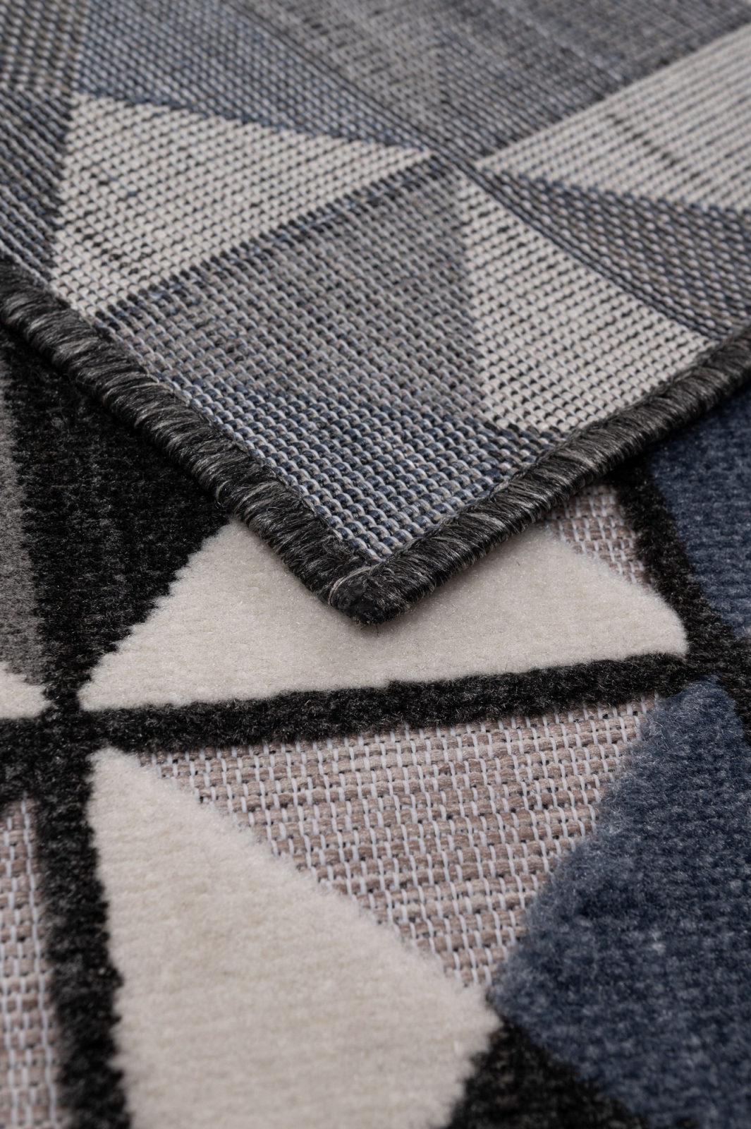 • The pile features a modern geometric pattern with varying pile heights, giving the rug a 3D effect.