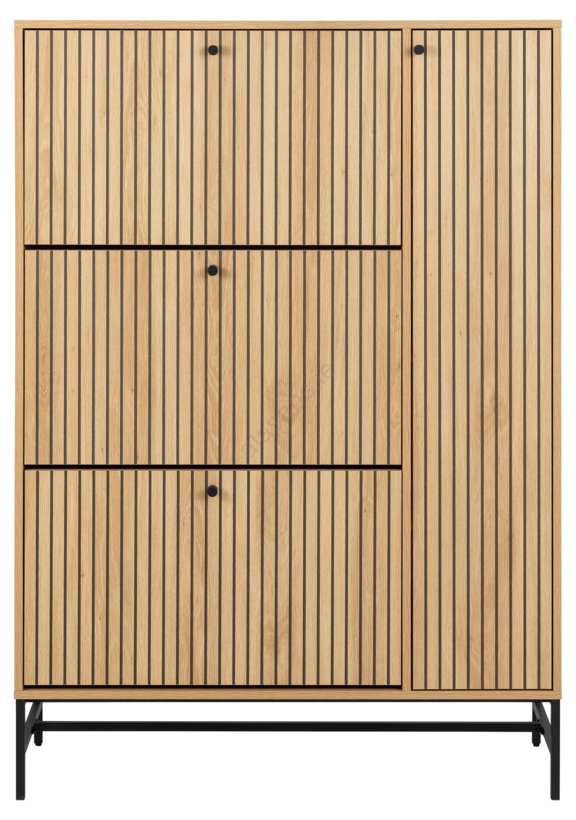 • This oak-look shoe cabinet with a slatted front brings style and practicality to your hallway.