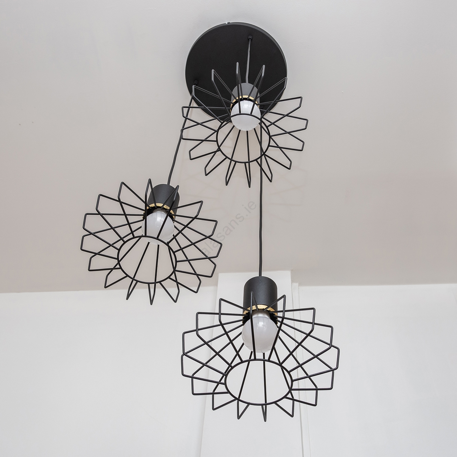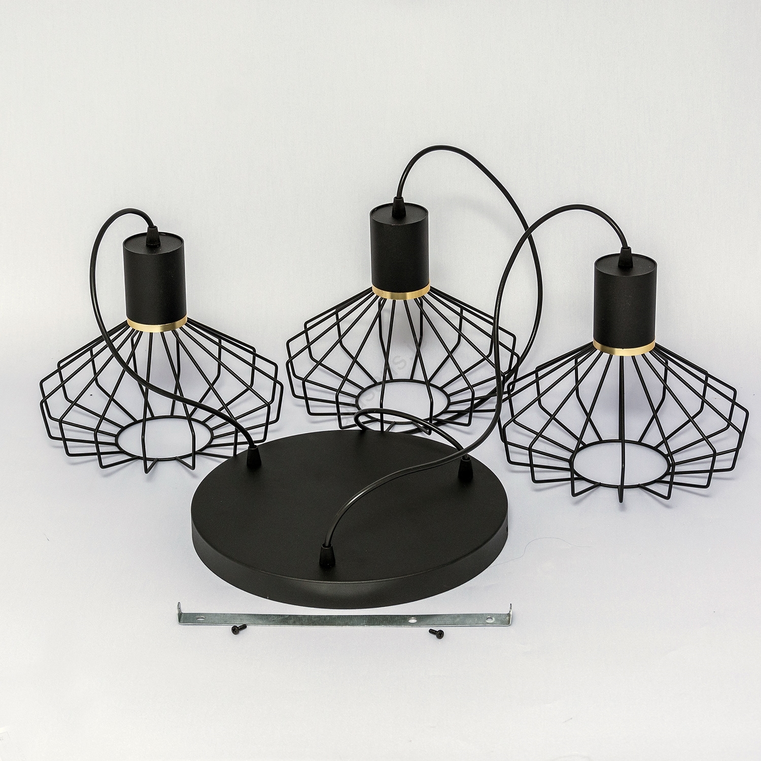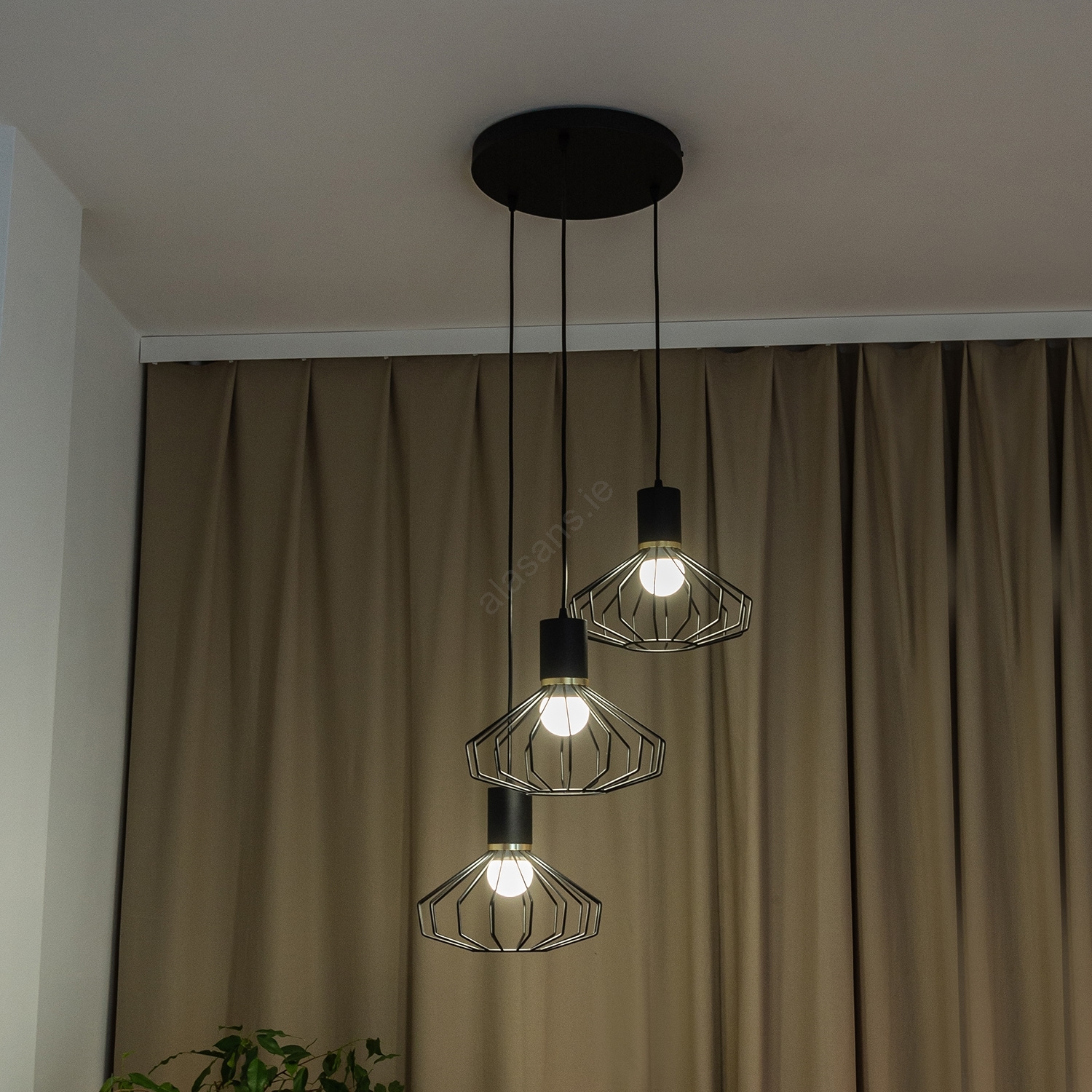 SOLANO Cable-Hung Chandelier, 3x E27/15W/230V, Black/Gold characterizes nice and functional design.  A bulb with E27 cap is suitable for the light. Here, you can buy other bulbs at advantageous prices. You will have an interesting addtiion to your home.
