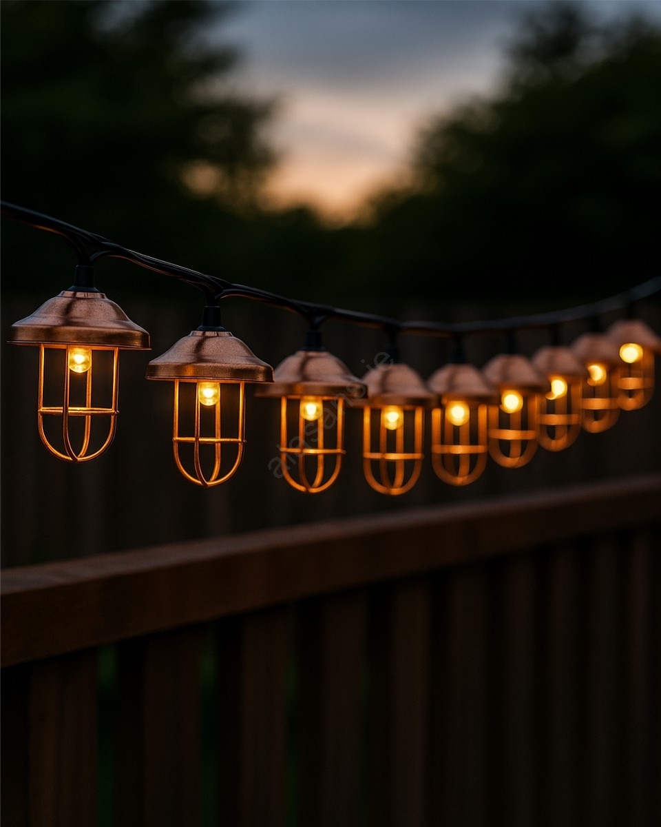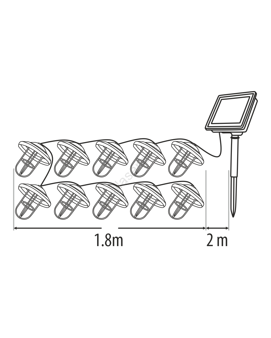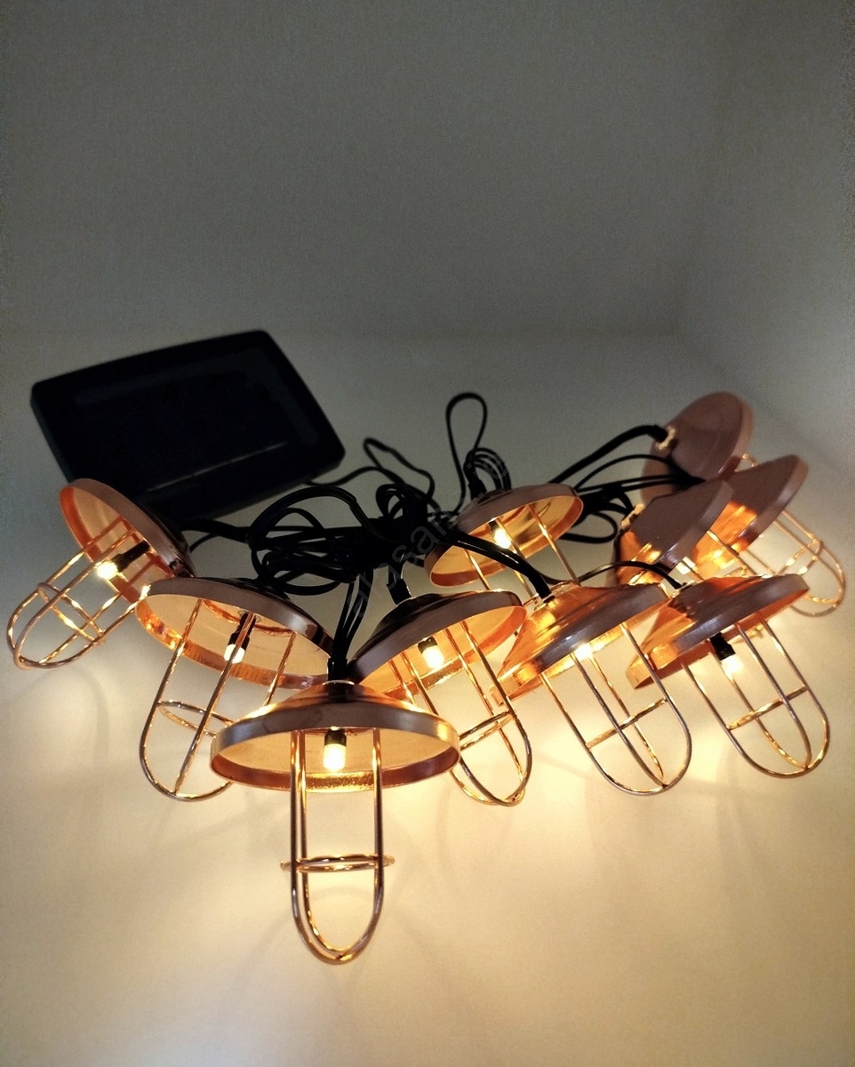 Solar LED string lights – 10 LEDs, 1.2 V / 300 mAh battery, 3.8 m length, IP44, copper