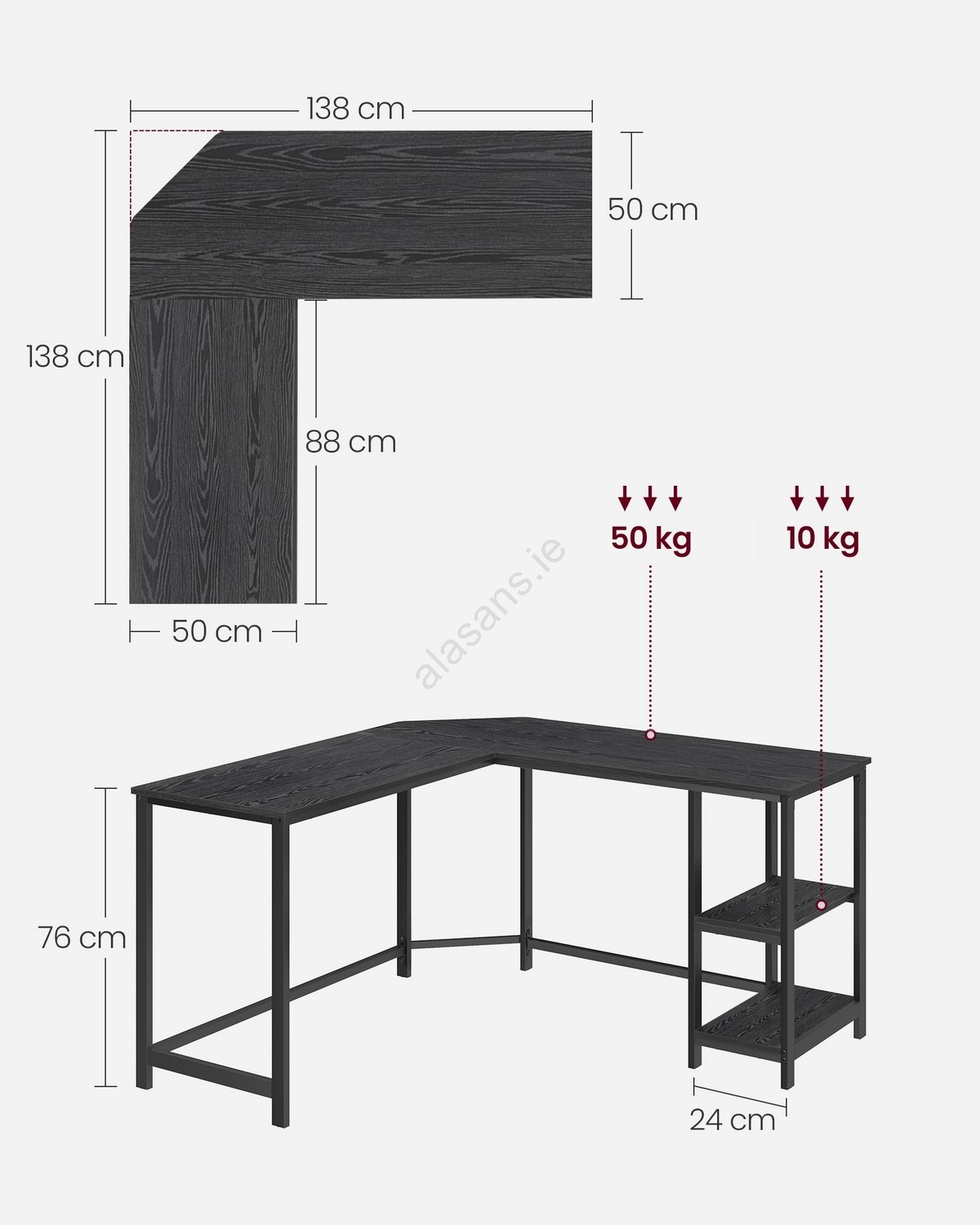 • The practical L-shape lets you make optimal use of space in your office or home workspace.