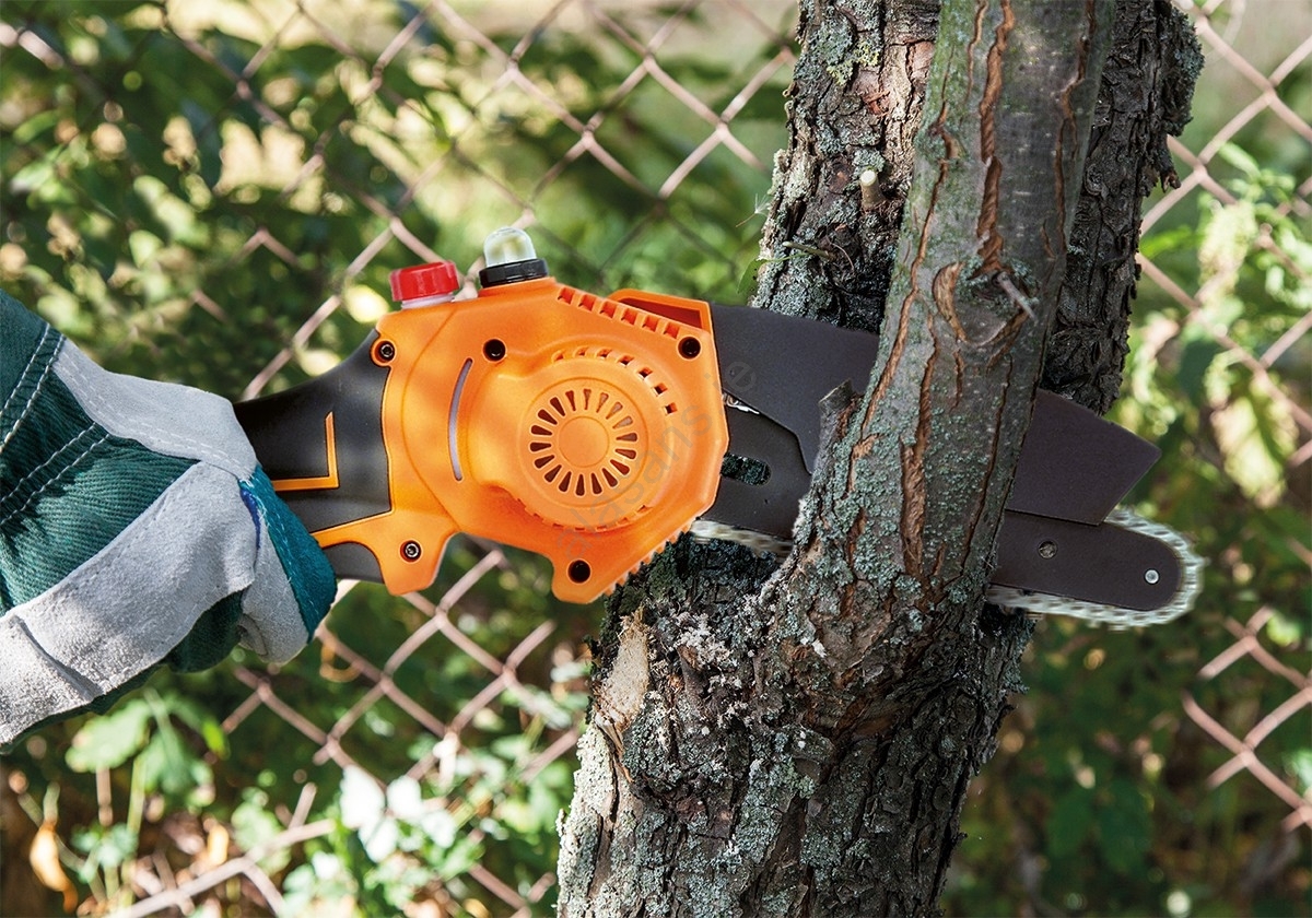 • Cordless handheld chainsaw.