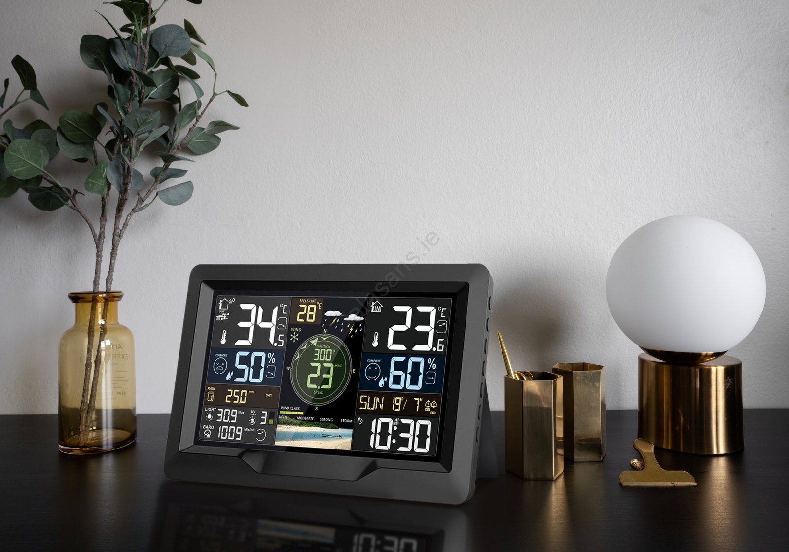 • Professional smart weather station with a color LCD display.