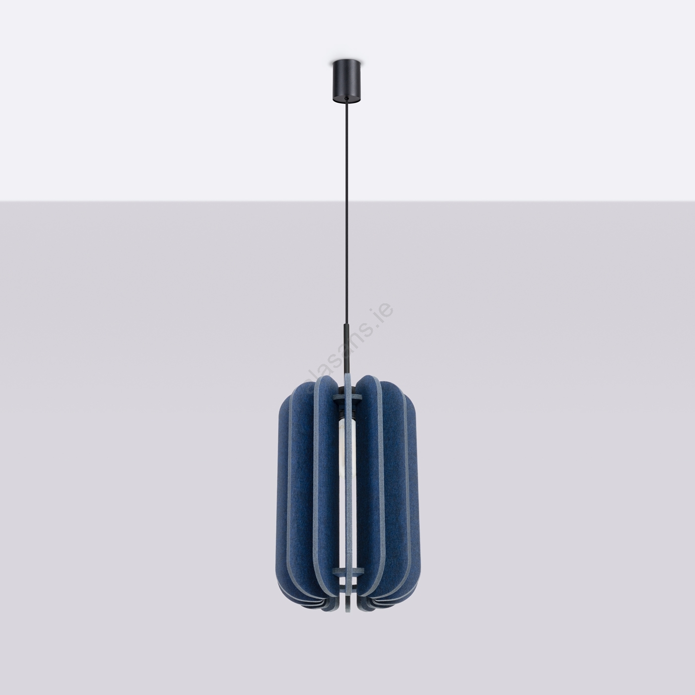 Pendant lamp on cord MULA 1xE27/15W/230V, Ø 27 cm, blue characterizes nice and functional design.  A bulb with E27 cap is suitable for the light. Here, you can buy other bulbs at advantageous prices. You will have an interesting addtiion to your home.