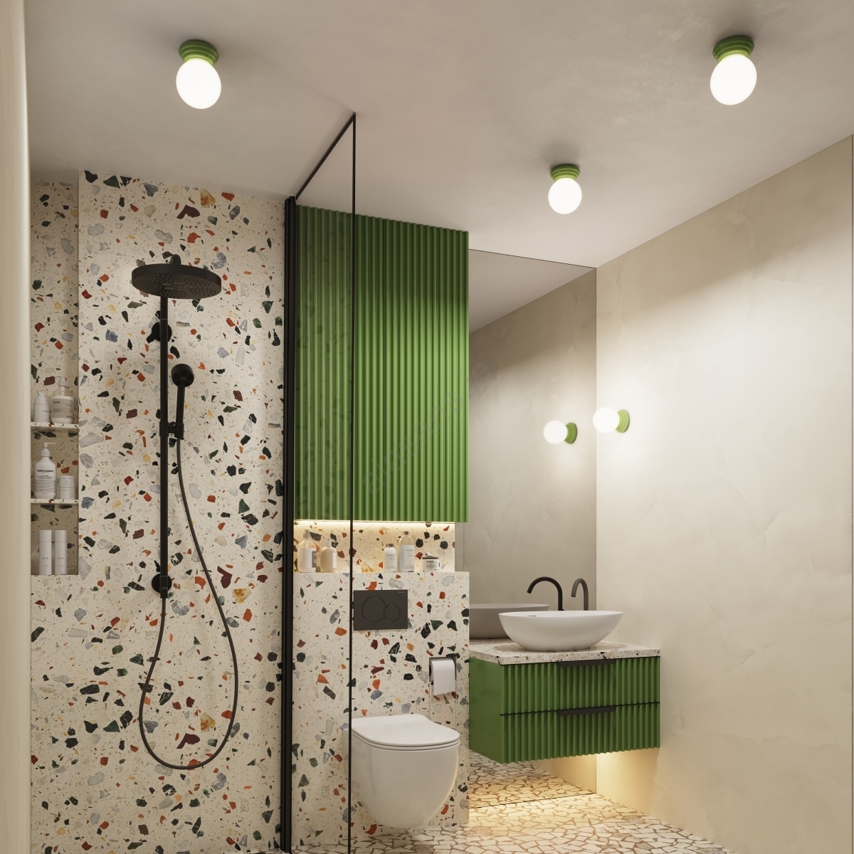 Bathroom ceiling light ZORI 1xG9/8W/230V Ø 12 cm IP44 green characterizes nice and functional design.  A bulb with G9 cap is suitable for the light. Here, you can buy other bulbs at advantageous prices. You will have an interesting addtiion to your home.