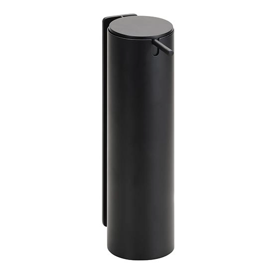 • Elegant black soap dispenser for modern bathrooms.