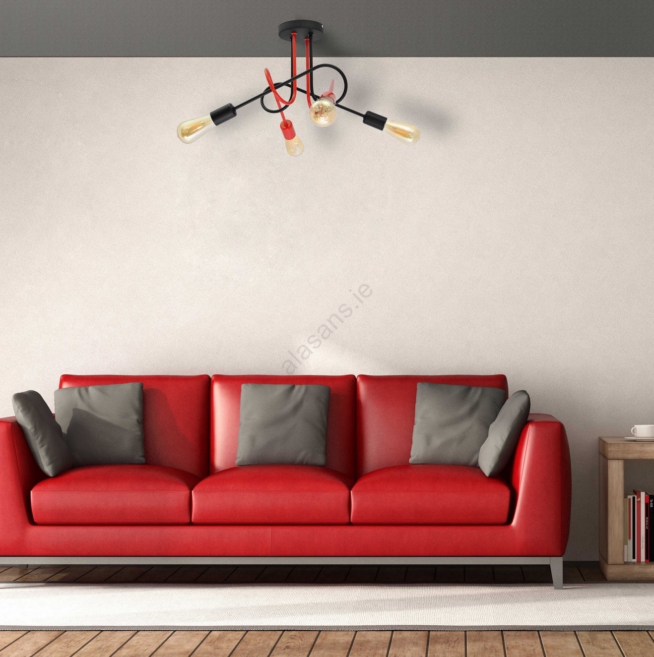 Surface-mounted chandelier OXFORD 4xE27/15W/230V black/red characterizes nice and functional design.  A bulb with E27 cap is suitable for the light. Here, you can buy other bulbs at advantageous prices. You will have an interesting addtiion to your home.