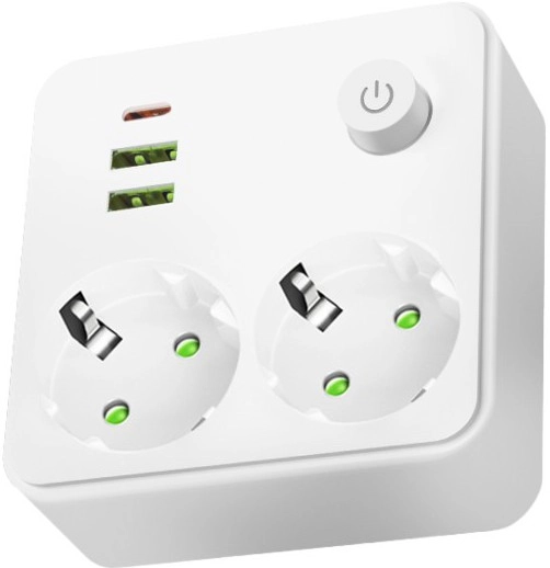 LINEA Power Strip with Switch 2x230V + 3xUSB A/C SCHUKO White