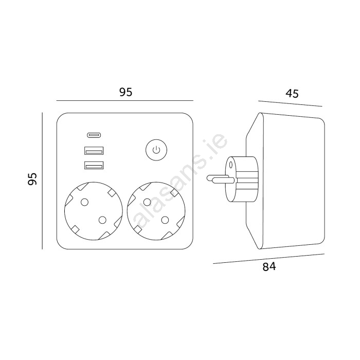 • Outlets: 2x 230V AC SCHUKO grounded outlets.