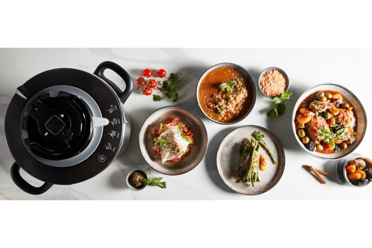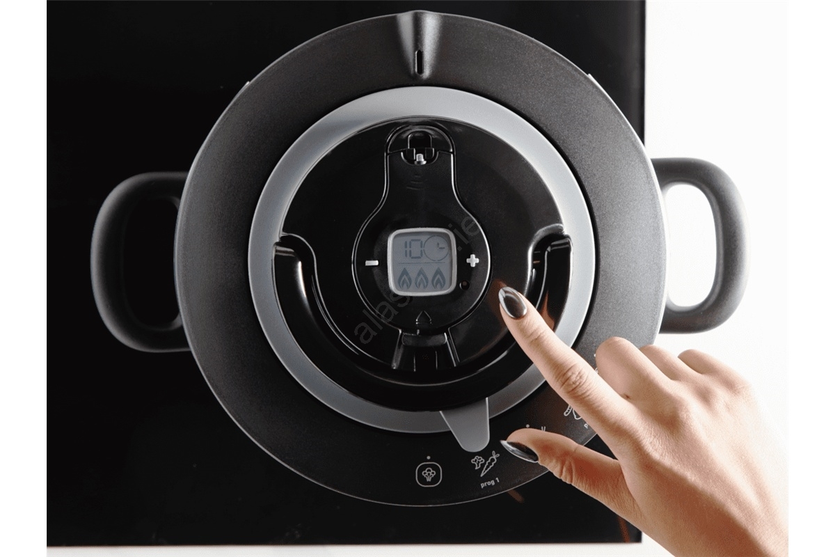 • The pressure cooker features 4 preset programs (vegetables, grains/legumes, meat, fish) to simplify preparing a variety of foods.